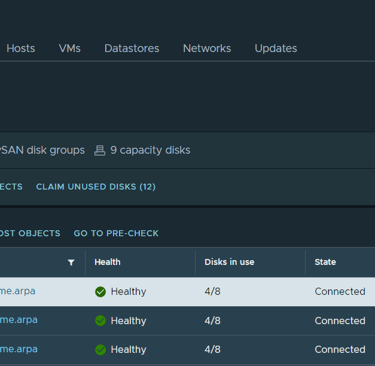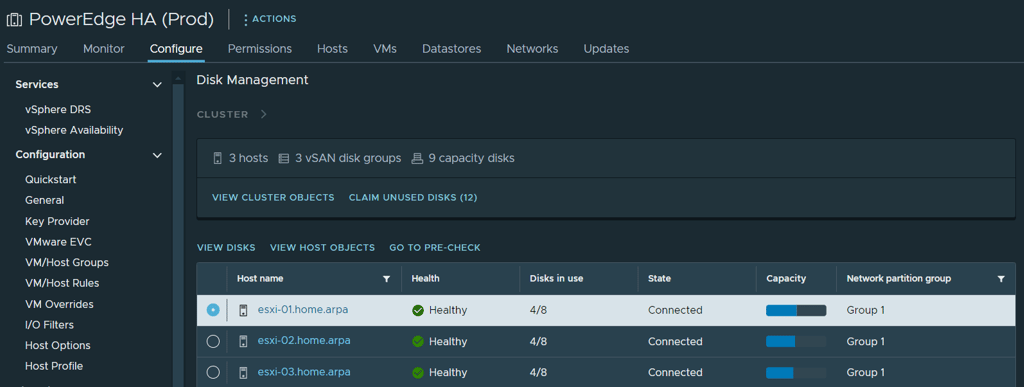 After clicking create, the vSAN cluster is now expanded to use all 8 drives