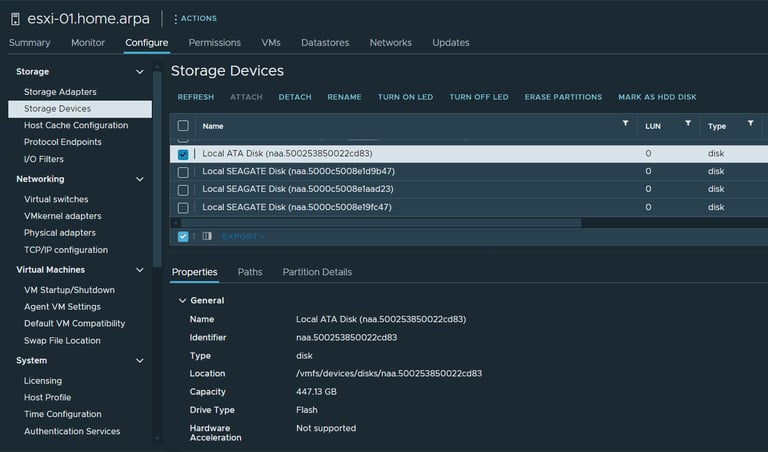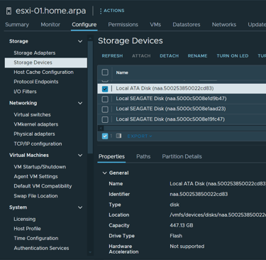 Here I have 3-480GB Samsung Entrprise SSDs and 9 Seagate 1.2tb enterprise SAS drives across my 3 hosts
