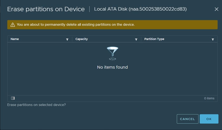 Now that the drives are erased they should show up as uncliamed disks under cluster name -> configure -> vSAN -> Disk Management -> claim unused disks