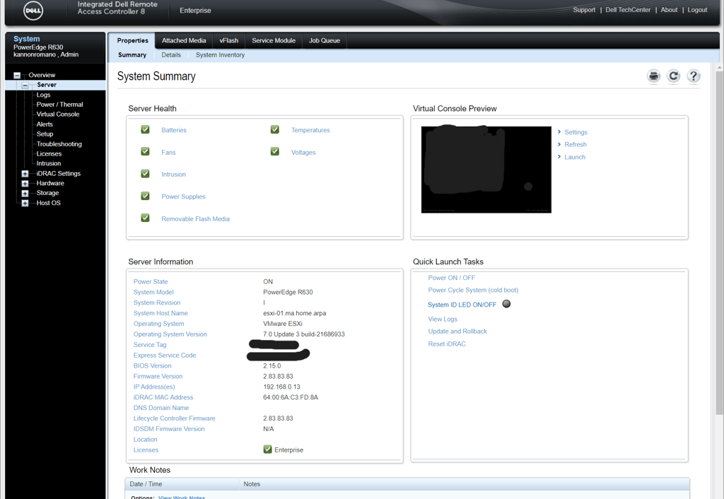 Now for IPMI Dell has the best management software in the business I think, every single option or reading you could possibly want is in iDRAC and UPDATES are FREE HPE. So installing VMware ESXI was very simple just download the image from VMware and open up the KVM and mount the ISO file and boot off the virtual CD.
