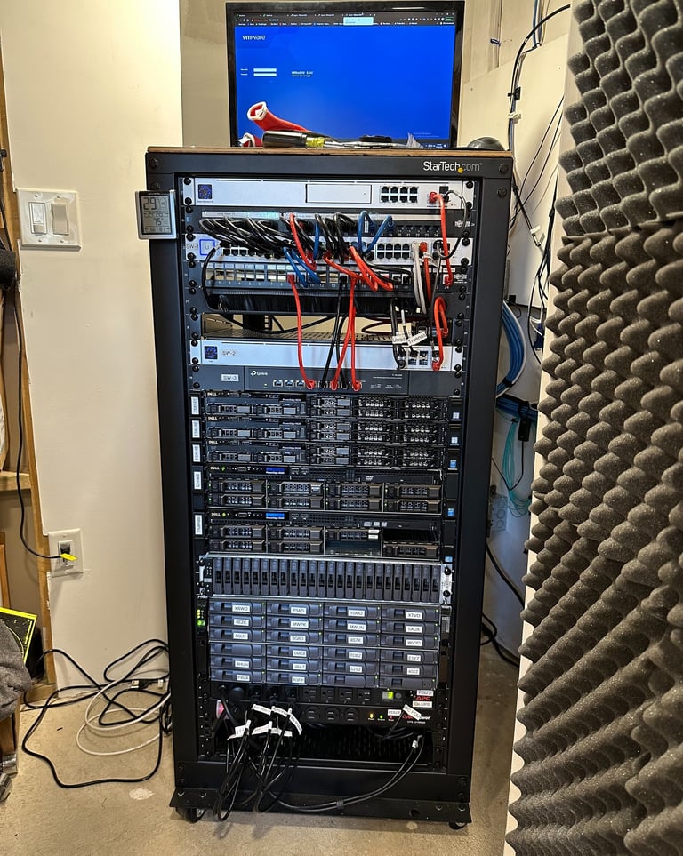 Now for the fun part of pulling the whole rack out, installing the rails and servers and cabling everything nice and neat