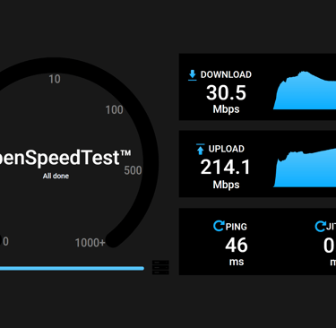 Speed Tests between the 2 sites download and ping are going to be limited because of the cable connection at that site. But 200mbps is enough for what I'm using it for.