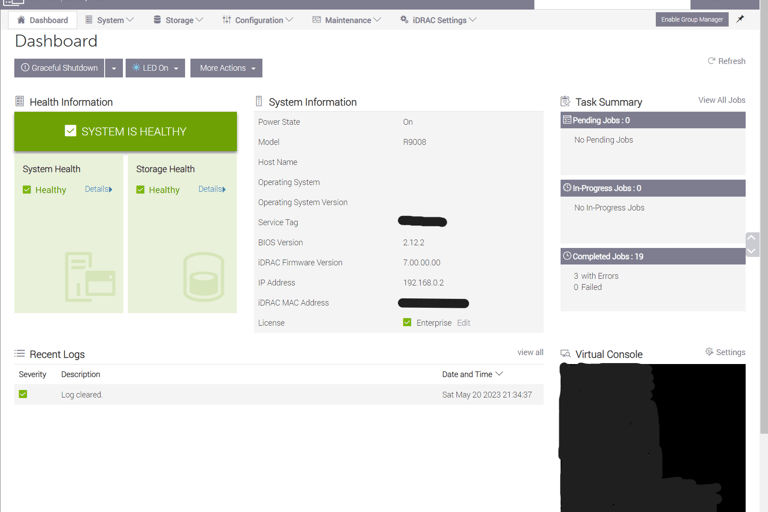 This particular Server was even installed and serviced here by a local MSP in the Mass area. It didn't come with iDRAC 9 Enterprise only standard so there's no KVM, but that's fine because I can just buy and install a license key for it.